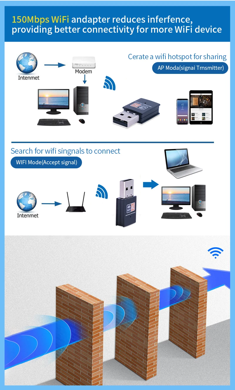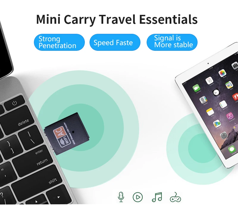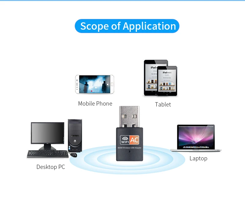 WiFi DongleMain IC:RTL8811Date Rate:600Mpbs Wireless Protocol:IEEE802.11.b/g/n Frequency:2.4GHz+5.8GHz USB Interface:USBAntenna:No Antenna Color:Black+Blue