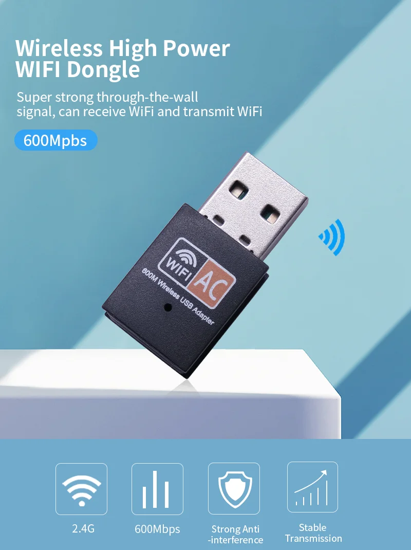 WiFi Dongle: Chip RTL8811 600Mpbs 2.4G+5.8GHz USB 2.0