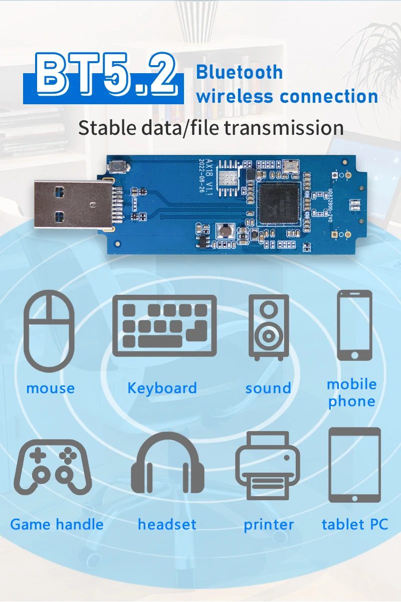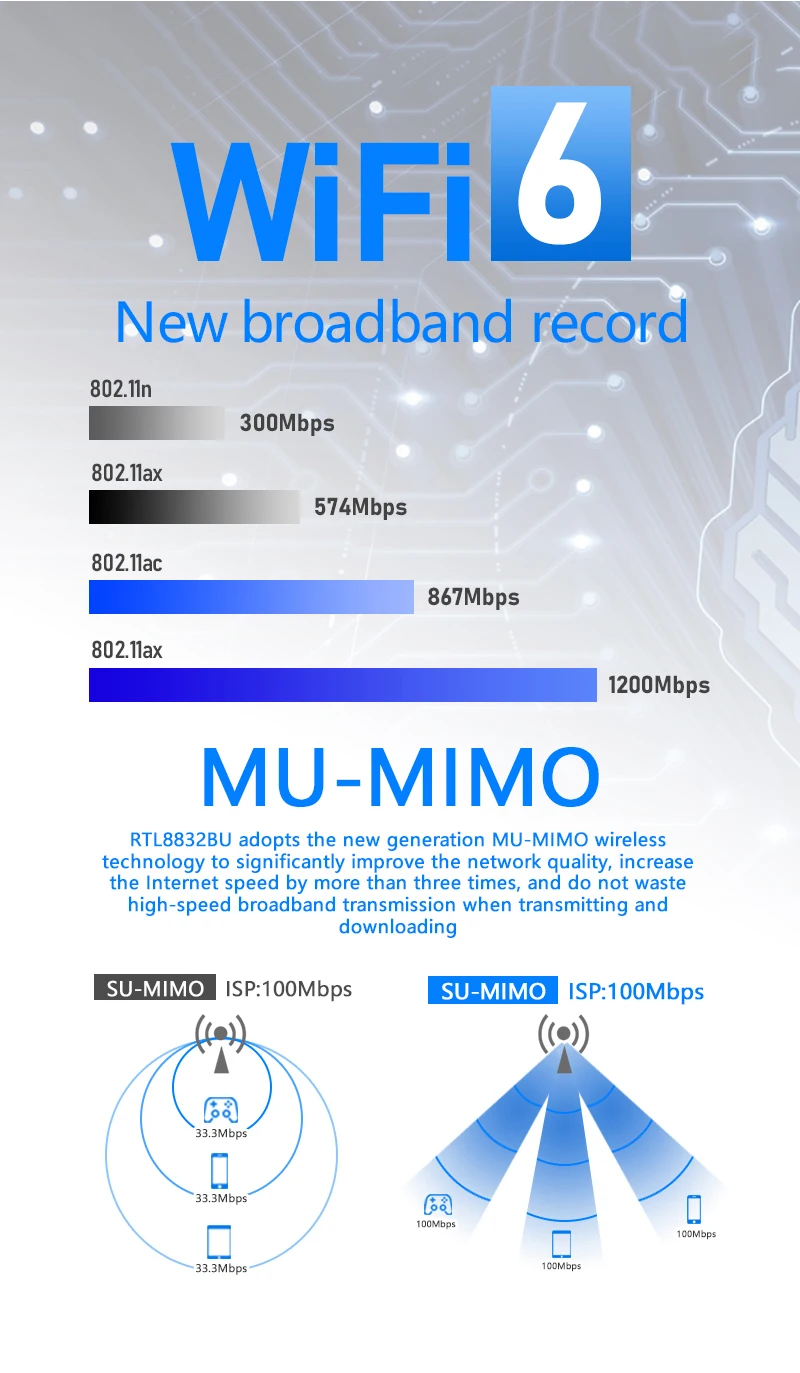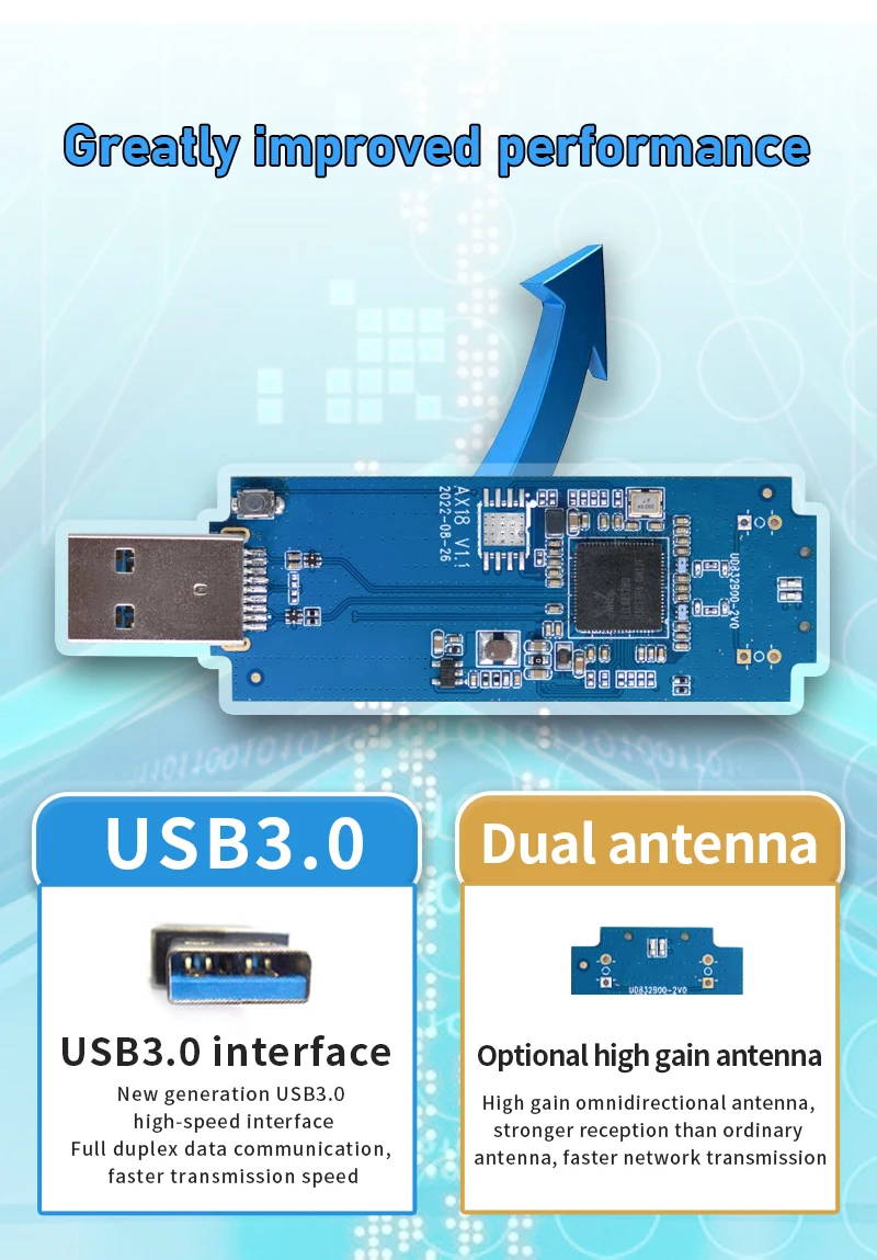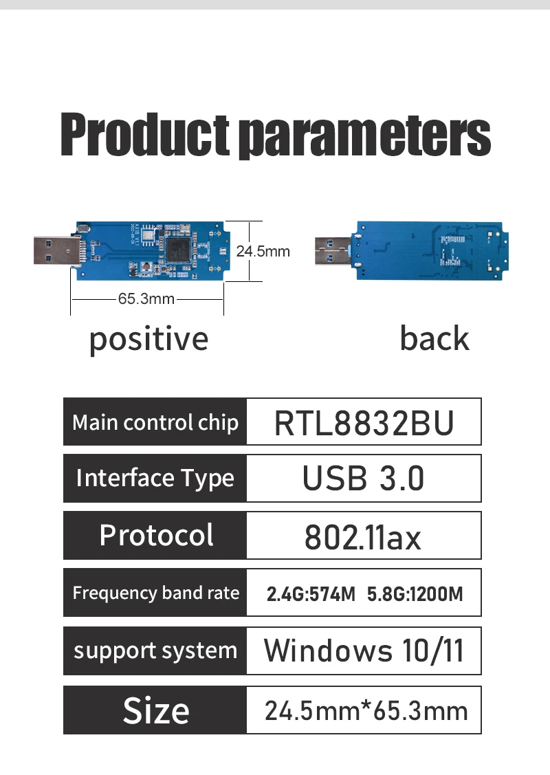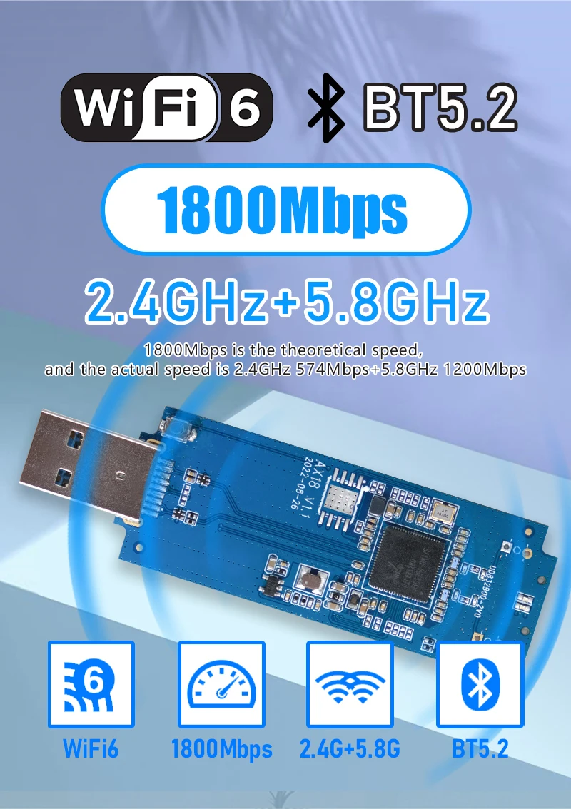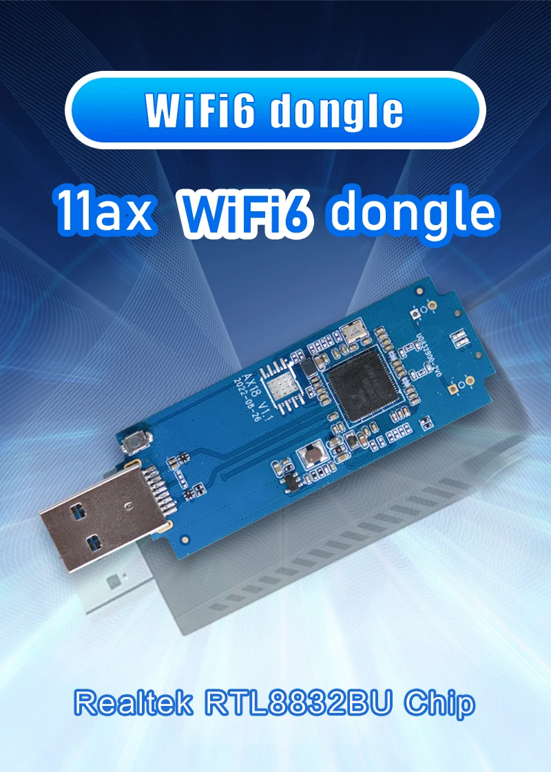 WiFi Dongle: Chip RTL8832BU 1800Mpbs 2.4G+5.8GHz USB 3.0