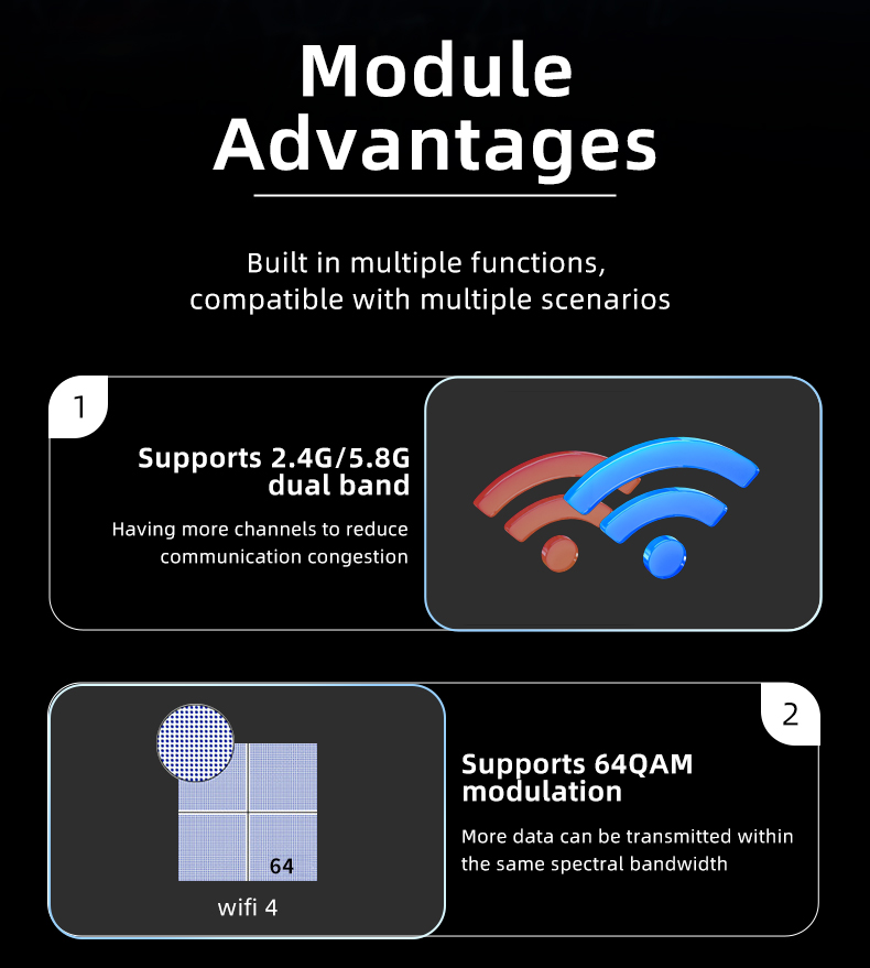 Chip: RTL8733BU-CG/VL-CG 1T1R 2.4+5.8G 150M USB 12.2*12.9mm
