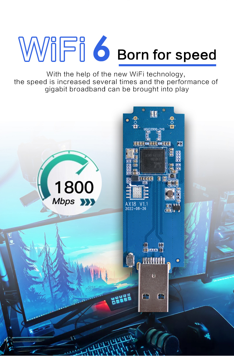 WiFi Dongle: Chip RTL8832BU 1800Mpbs 2.4G+5.8GHz USB 3.0